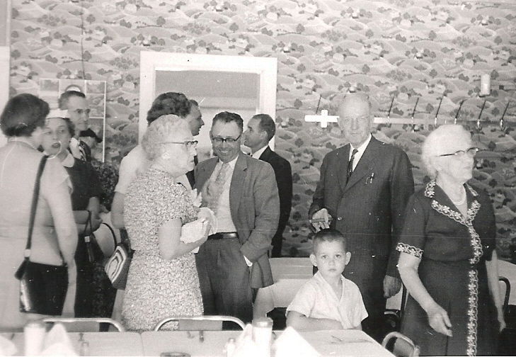 Kelley Family Meal. A family meal at a restaurant in Franklin, KY, around June 1955. Left to right: back of Judy B. Meador, Ida Kelley, Oral Meador, Louise Kelley, Ernest Harrell, over his shoulder is Haynes Kelley Sr., little boy is Bill Harrell, over him is Walter Preston Kelley, and to the right is Mitt Kelley Pepper, Cott's sister. more…